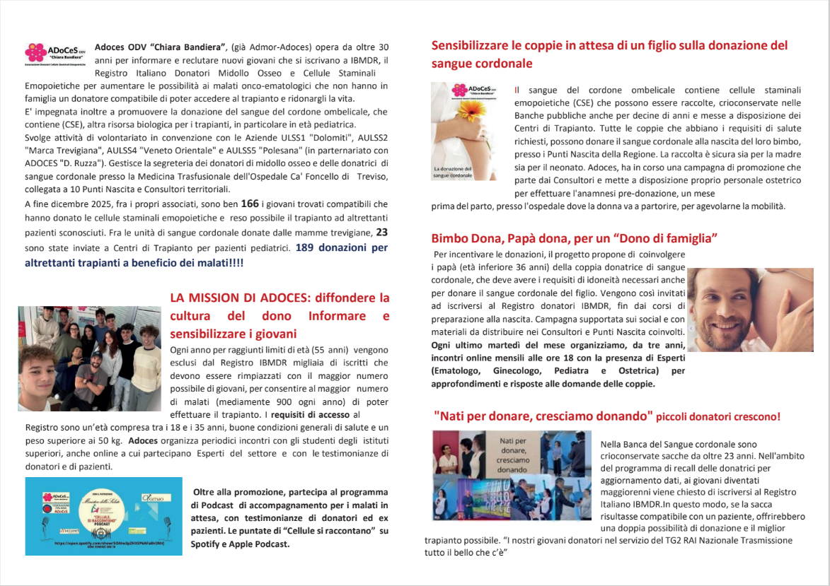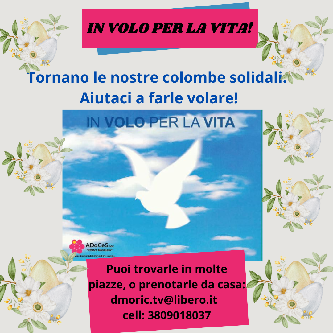 L’associazione promuove ogni anno la ormai trentennale campagna “In volo per la Vita” con la distribuzione di colombe, grazie alla collaborazione di volontari, associazione ANA, aziende ed enti commerciali.
