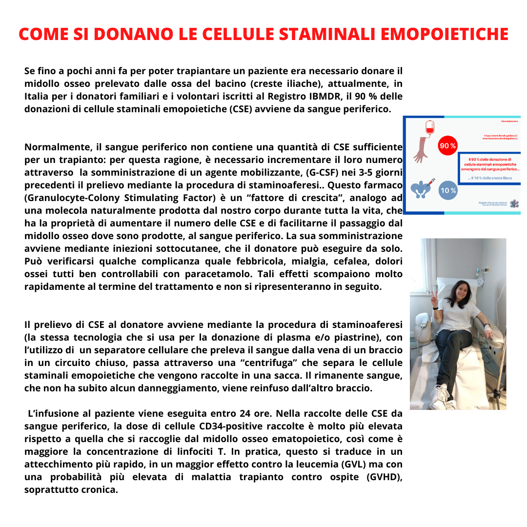 In entrambe le modalità di raccolta, le cellule staminali emopoietiche prelevate si ricostituiscono nell’ arco di quattro settimane.